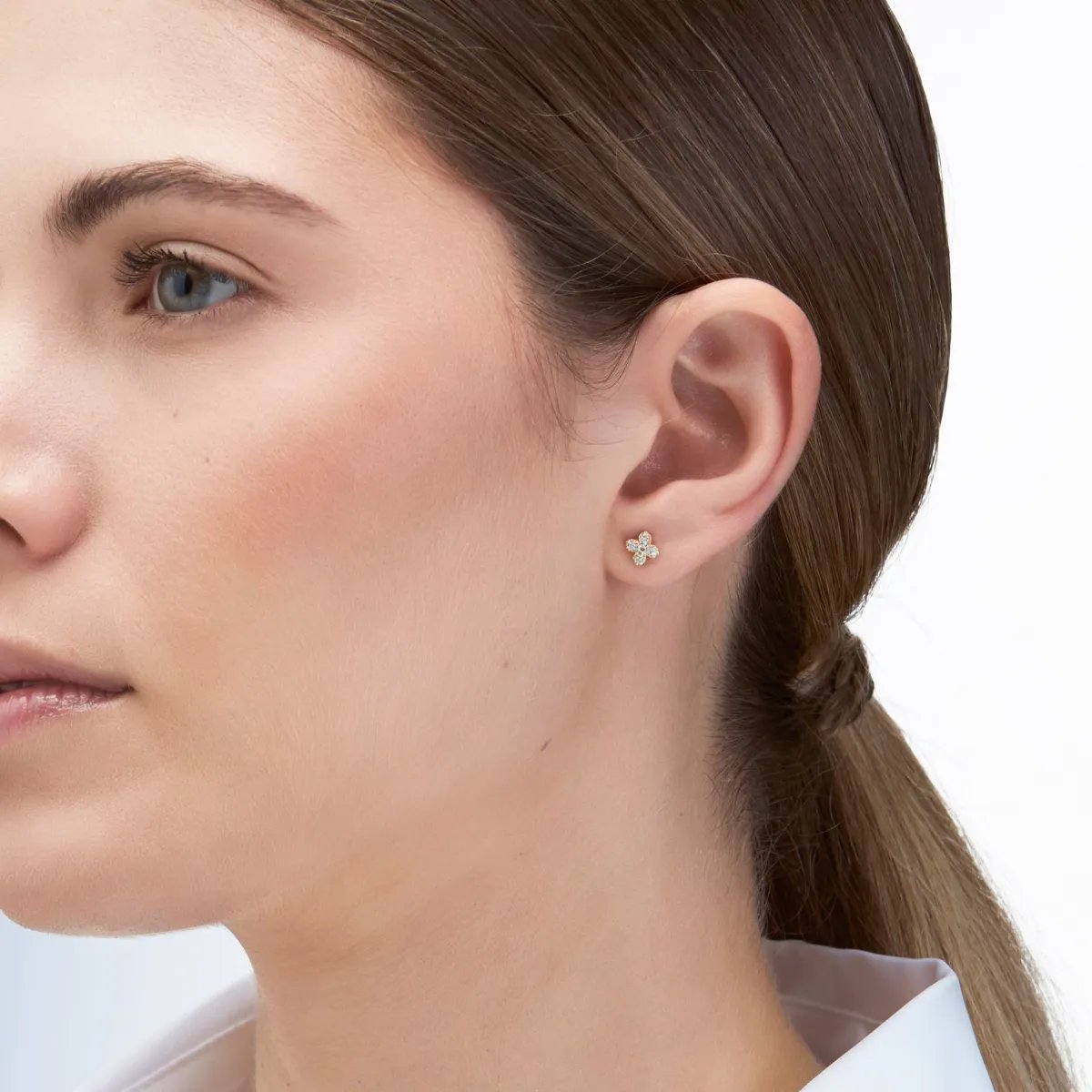 Yellow gold earrings with pavé zirconia in the shape of a flower