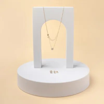 Set (necklace + earrings) in yellow gold with cubic zirconia