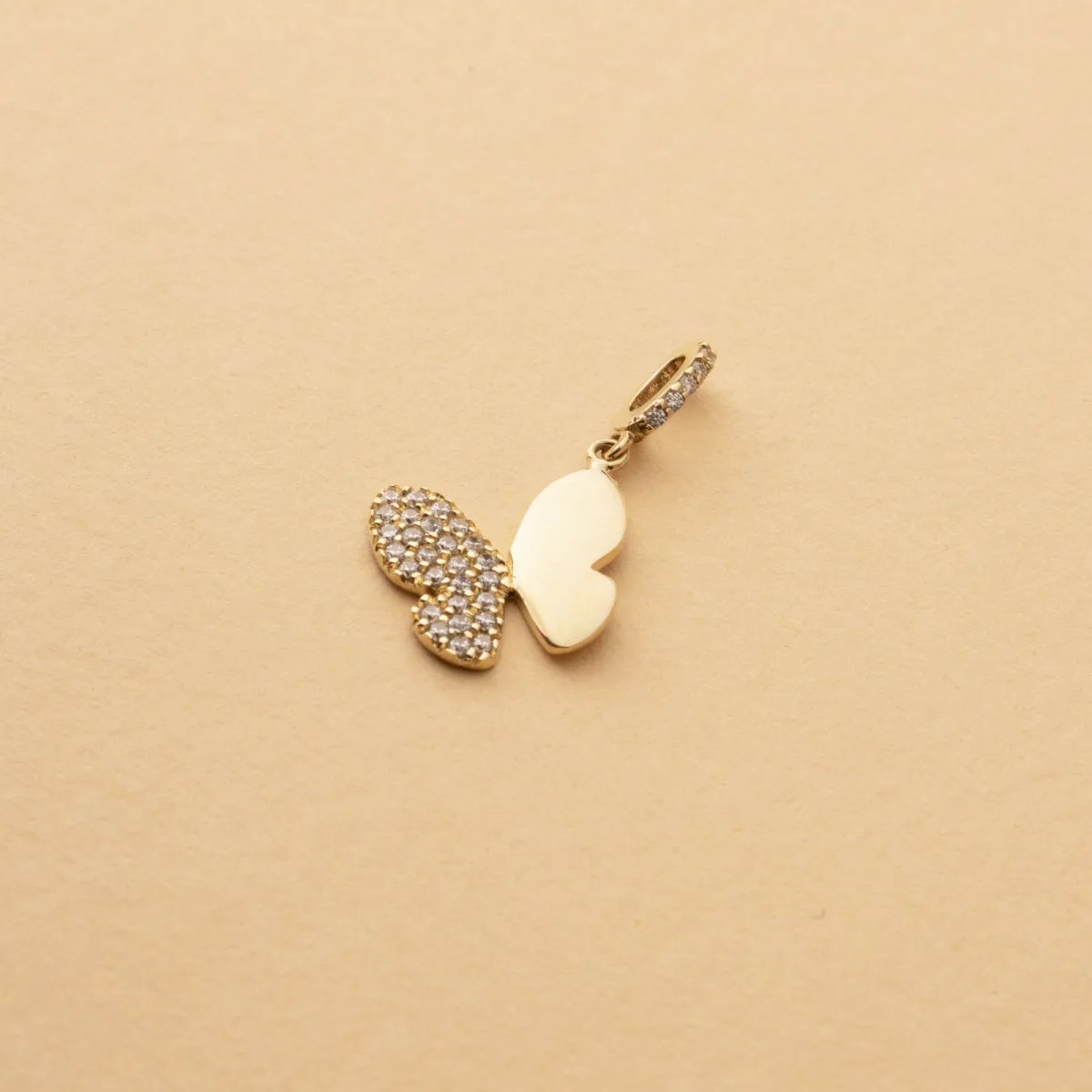 White and yellow gold butterfly-shaped pendant with cubic zirconia